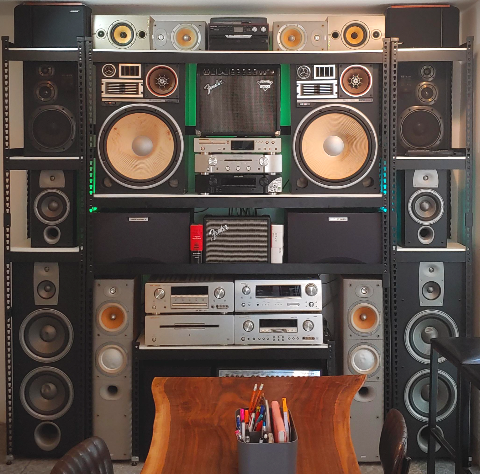 -센터 스피커의 교체도 있었습니다. 기존에 마란츠 MK-100으로 교체했습니다. 그전에 대체품으로 썼지만, 가동했을 때의 맑은 소리의 감각이 좋았거든요. 앰프 두 대에 센터 자리를 맡고 있습니다.